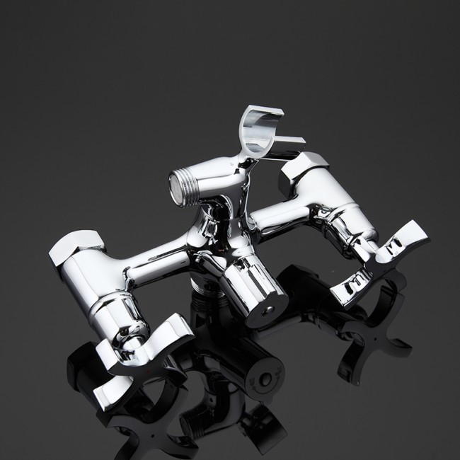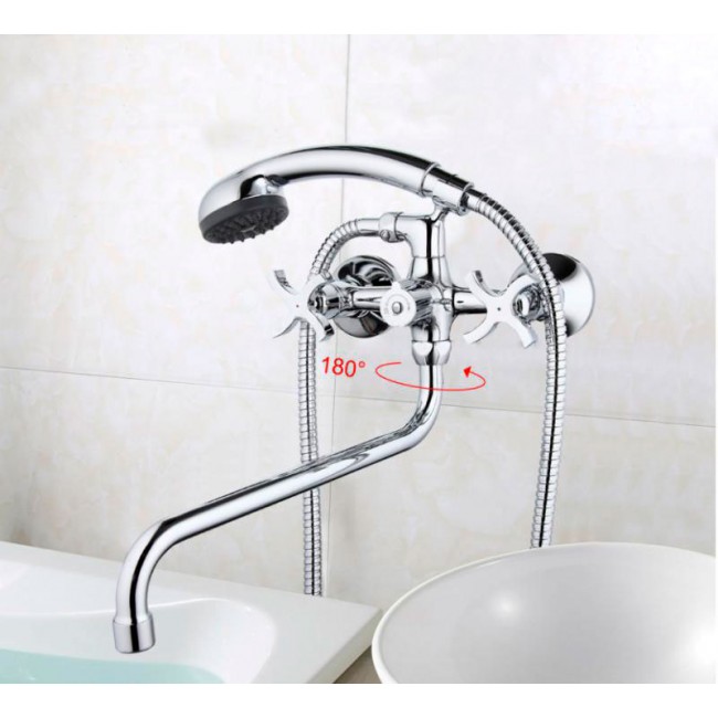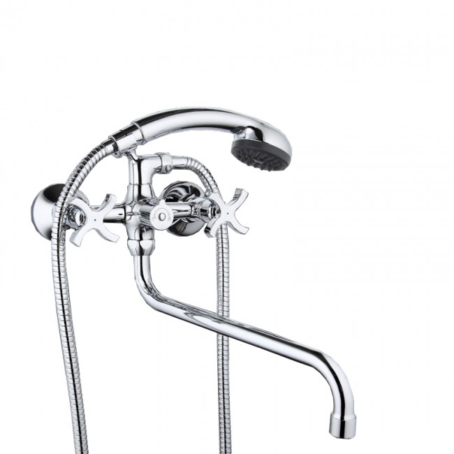 Двухвентильный смеситель для ванны G2243 GAPPO с переключателем в корпусе, изготовлен из латуни с последующим хромированием. Оборудован поворотным изливом (длина 320 мм), крестообразными металлическими рукоятками и поворотным переключателем дивертора..Кран-букса с керамическими пластинами (угол поворота 180 градусов). В комплекте однорежимная душевая лейка, держатель на корпусе, шланг (1500 мм) вращается на 360 градусов, аэратор.