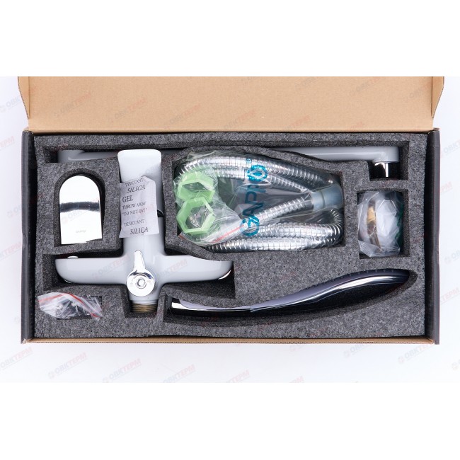 | Комплектация | Смеситель; Держатель лейки; Душевая ручная лейка; Душевой шланг 150 см; Эксцентрики;Паспорт. |