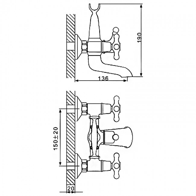| Длина излива, мм | 136 |