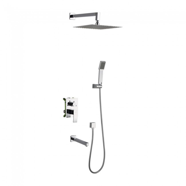 Предлагаем встроенный смеситель для ванны с 3-функциями G7102 GAPPO. Металлическая рукоятка. Тропический душ 300x300 мм. Скрытый корпус. Верхний и нижний излив. Панель с переключателем и рукояткой. Держатель для ручной лейки.