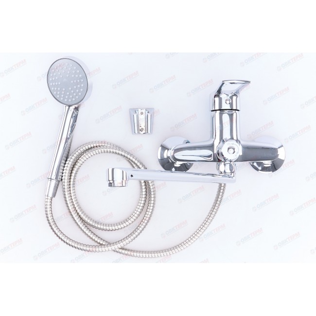 Количество в коробке: 10шт. Производитель использовал силумин для изготовления корпуса. Этот сплав устойчив к коррозии и механическим повреждениям, которые часто образовываются в виде протечек или микротрещен, спустя некоторое время эксплуатации. Силуминовый картриджный смеситель для ванной с длинным поворотным носом, с душевым шлангом и лейкой в комплекте. Смеситель предназначен для настенного монтажа на два отверстия. Принцип смешивания воды — однорычажный.