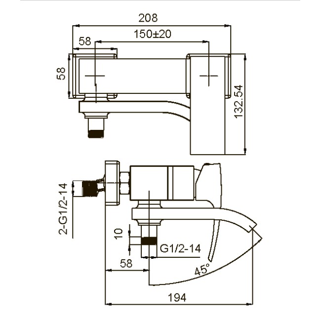 | Длина излива, мм | 150 |