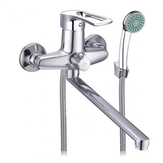 Количество в коробке: 10шт. Смеситель для ванны выполнен в классическом стиле с длинным поворотным изливом и однорычажным механизмом смешивания воды. Стильный отполированный внешний вид. Подойдет под любой дизайн интерьера. Имеет хромированное покрытие, что значительно облегчает уход, а также предотвращает от образования ржавчины на изделии. Комплектуется лейкой с одинарным режимом работы, шлангом, держателем под лейку, эксцентриками, уплотнительными резинками и декоративными вставками. Смеситель для ванны устанавливается на стену с жестким подводом труб. Отверстия лейки снабжены специальными резинками, которые усиливают струю и экономят расход воды.