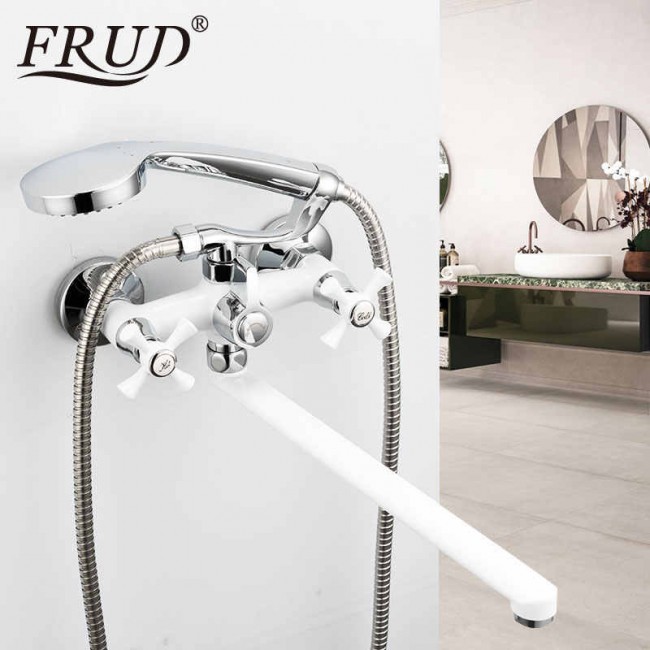 Смеситель для ванны Frud R22332, оснащён двумя вентилями для того, чтобы регулировать напор воды. Наличие аэратора в приборе позволяет обеспечить равномерный поток воды и ее относительноесмягчение. Сетка в устройстве отфильтровывает различные примеси. Монтируется на стене с целью подключения подводки из стены.