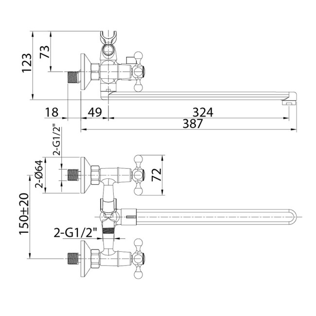 Количество в коробке: 12шт. Смеситель для ванны двухвентильный - сантехнический прибор, предназначенный для регулирования и смешивания горячей и холодной воды, что позволяет получить единый поток с максимально комфортной температурой. Данный смеситель предназначен для ванны и представляет собой корпус с изливом, имеющий управляющий элемент в виде двух вентилей, позволяющих отрегулировать поток как холодной, так и горячей воды.