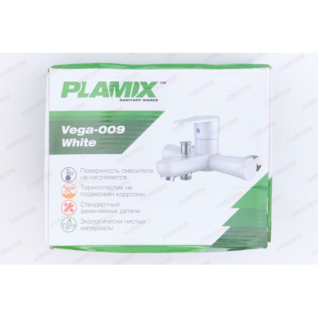 Смеситель для ванны VEGA-009 короткий белый без шланга и лейки Plamix