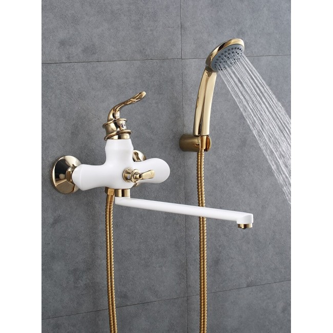 Количество в коробке: 10шт. Смеситель для ванны выполнен в оригинальной форме с длинным поворотным изливом и однорычажным механизмом смешивания воды. Стильный отполированный внешний вид. Подойдет под любой дизайн интерьера. Имеет специальное покрытие, что значительно облегчает уход, а также предотвращает от образования ржавчины на изделии. Комплектуется лейкой с одинарным режимом работы, шлангом, держателем под лейку (монтируется на стену), эксцентриками, уплотнительными резинками и декоративными вставками. Смеситель для ванны устанавливается на стену с жестким подводом труб. Отверстия лейки снабжены специальными резинками, которые усиливают струю и экономят расход воды.
