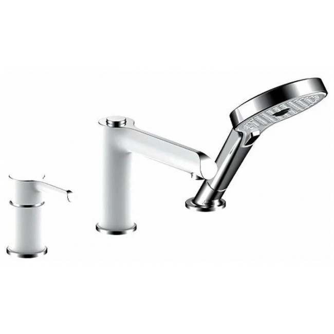 Смеситель для ванны G1148 GAPPO на три отверстия. Изготовлен из латуни в цвете белый/хром. Металлическая рукоятка, Корпус монолитный, неповоротный. Керамический Испанский картридж Ф35 мм. Гибкая подводка (500 мм). Аэратор. Шланг. (1500 мм), вращающийся на 360 градусов. Однопозиционная лейка.