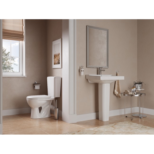 Пьедестал Santeri Орион скрывает сантехнические коммуникации, придает интерьеру ванной эстетичный и завершенный вид. Белая подставка из санитарной керамики создает единую композицию с раковиной.