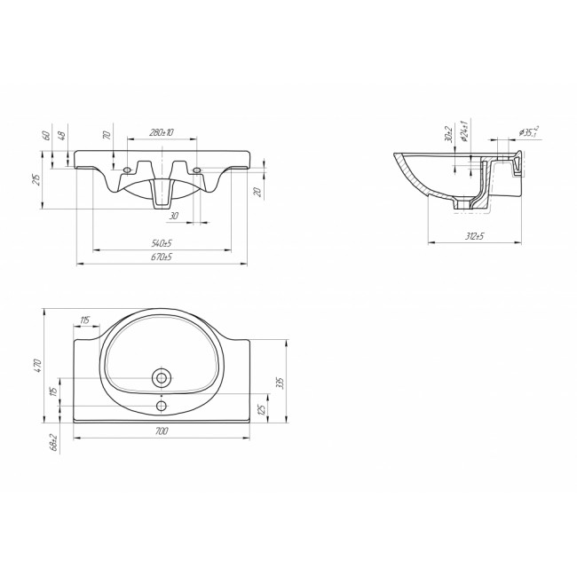 | Диаметр Ø отверстия перелива, мм | 24 |