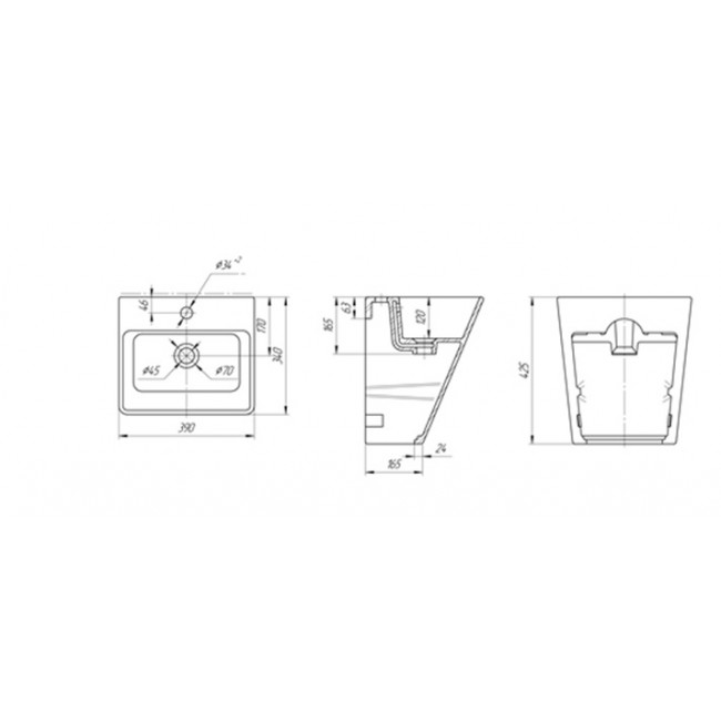 | Диаметр Ø сливного отверстия, мм | 45 |