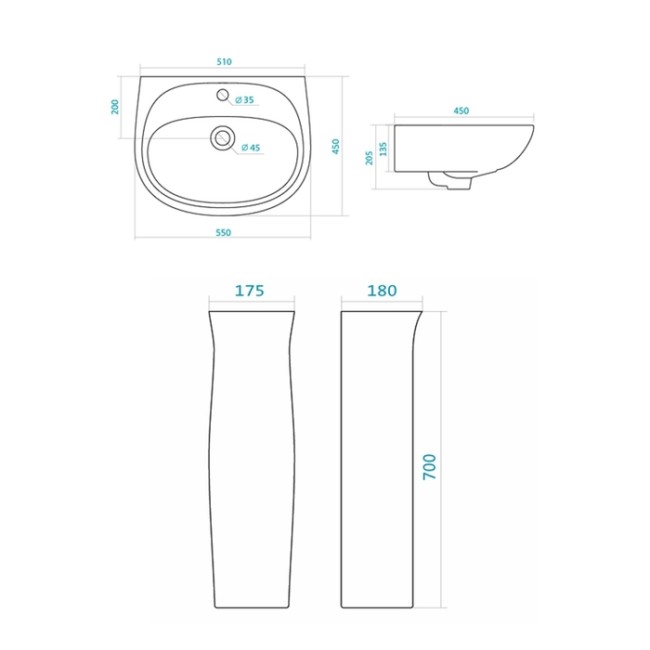 | Ширина умывальника, мм | 550 |
