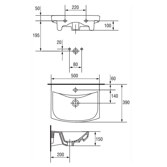 | Ширина умывальника, мм | 500 |