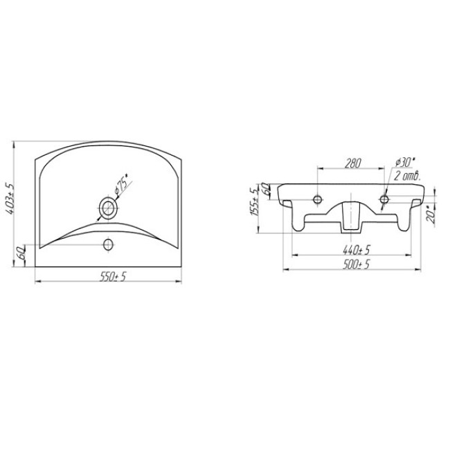 | Диаметр Ø сливного отверстия, мм | 75 |