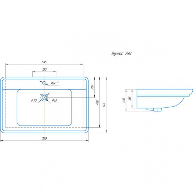 | Диаметр Ø сливного отверстия, мм | 70 |