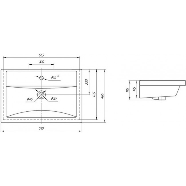 | Диаметр Ø отверстия под смеситель, мм | 34 |