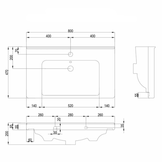 | Ширина умывальника, мм | 800 |