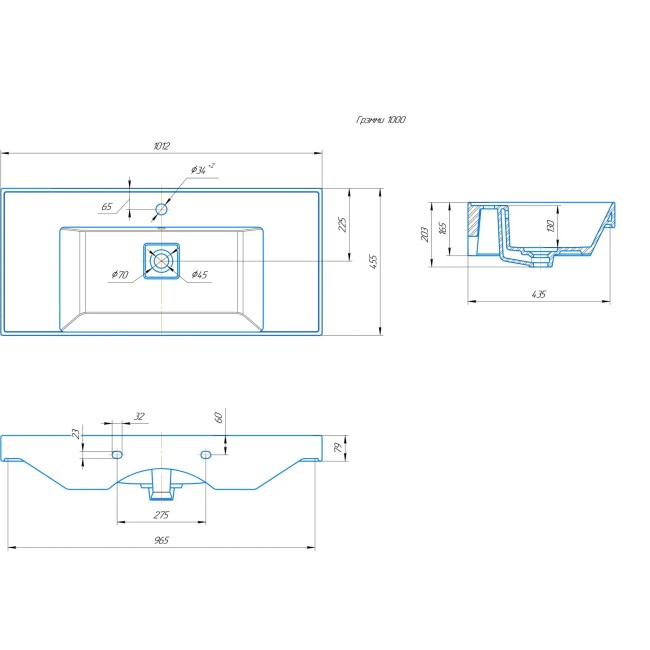| Ширина умывальника, мм | 1012 |