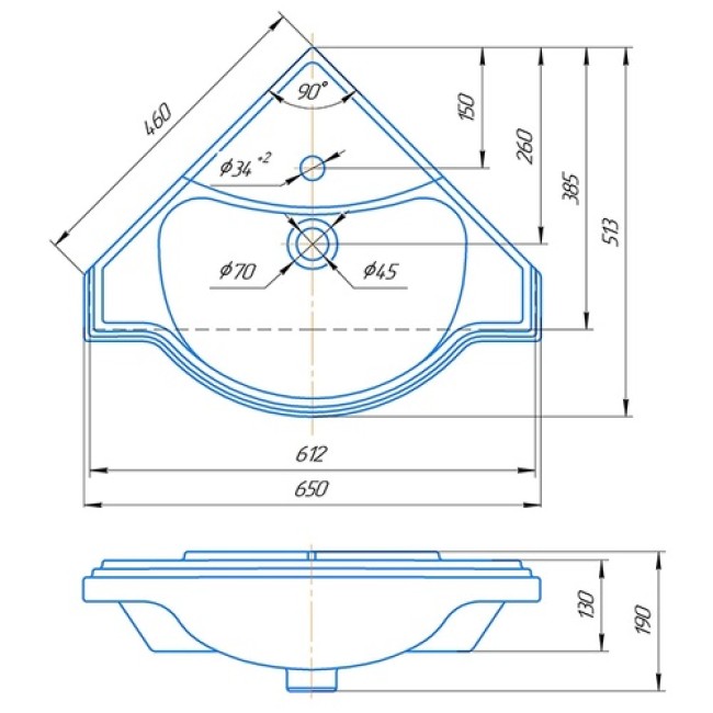 | Форма умывальника | Угловая трапеция |