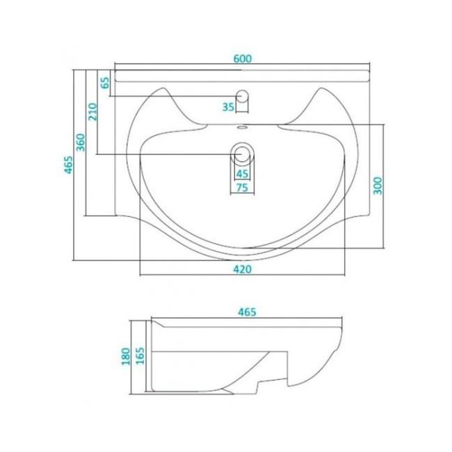 Продается только в комплекте с тумбой. Габариты (шгв): 60,5x47x19 см. Фаянсовая. Слив-перелив в комплекте. Полувстраиваемая. Устанавливается на тумбу. Имеет 1 готовое отверстие под смеситель. Диаметр слива: 4.5 см