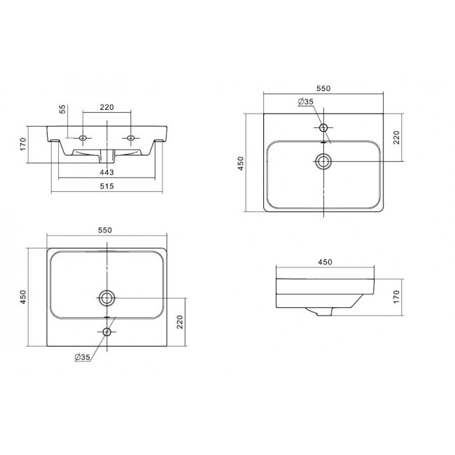 Умывальник мебельный SANTEK Адриана-55 ШВГ 550х170х450 (только для мебели AQUATON)