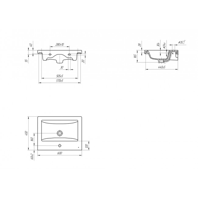 | Диаметр Ø отверстия перелива, мм | 24 |