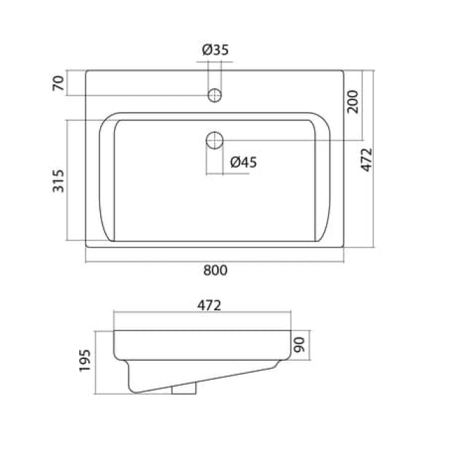 | Диаметр Ø отверстия под смеситель, мм | 35 |