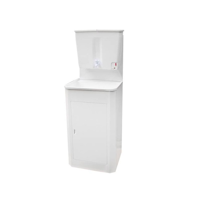 Умывальник Мойдодыр белый 17л ЭлБЭТ с пьедесталом - оригинальный дачный комплект идеально подходит для эксплуатации на загородном участке, а также в местах, где нет канализации и водоснабжения. Элегантная дверца скрывает полочку для ведра, имеет удобную ручку и магнитную защёлку.