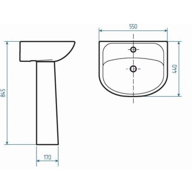 Умывальник второй величины с отверстием и спереливом. Устанавливается на постаменте или на кронштейны 240 мм, имеет отверстия для крепления к стене. Умывальник выполнен в современном дизайне.