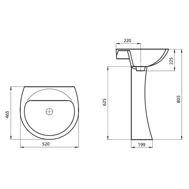 | Высота умывальника, мм | 225 |