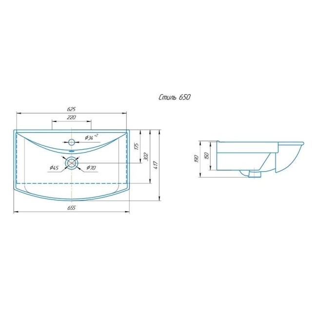 | Диаметр Ø отверстия перелива, мм | 24 |