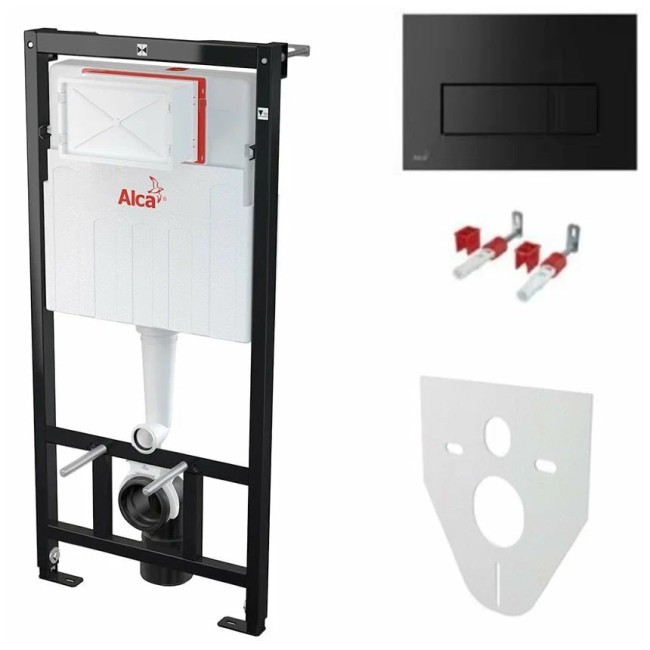 Инсталляция для унитаза AM101/1120+M91+М578 с черной матовой прямоугольной кнопкой Alcaplast