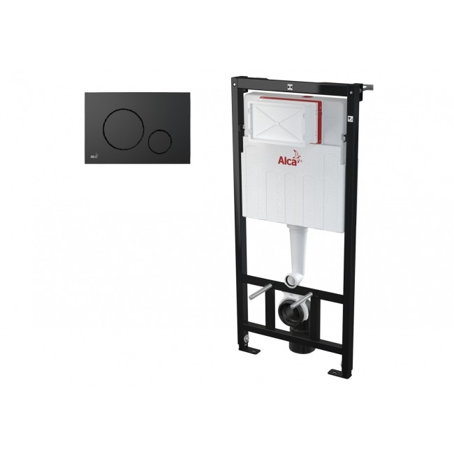 Инсталляция для унитаза AM101/1120+M91+М678 с черной матовой круглой кнопкой Alcaplast