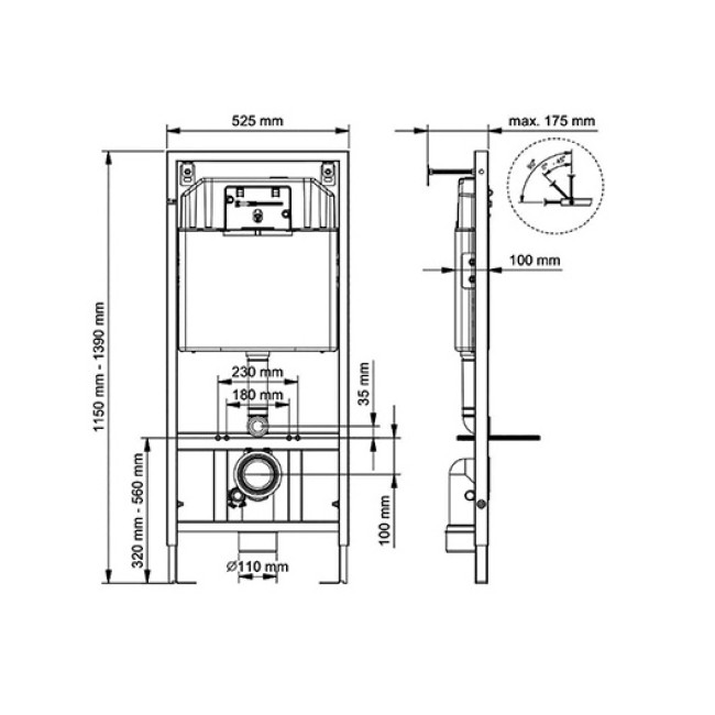 Инсталляционная система для подвесных унитазов для одиночного или рядного монтажа. Во время сборки не требуется дополнительного инструмента для монтажа инспекционного короба .