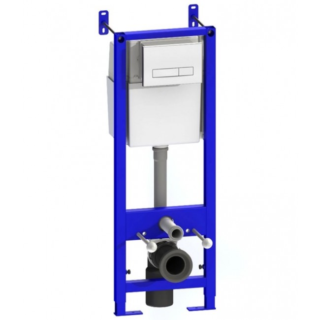 Система инсталляции комплектуется сантехнической арматурой, которая соответствует ТУ 22.23.12-002-02903999-2016. Стандартная настройка обеспечивает малый слив 3 л., полный слив составляет 6 л. Имеется возможность увеличить полный слив до 8,5 л. Неразборная металлическая рама, пластиковый бачок с установленной арматурой(3/8 л), кнопочный узел, комплект крепежа к стене, комплект крепежа унитаза, прокладка между стеной и унитазом, комплект заглушек и шаблон для монтажа, паспорт-инструкция по установке.