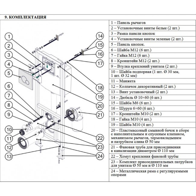 | Тип комплекта | Комплект инсталяция и унитаз |