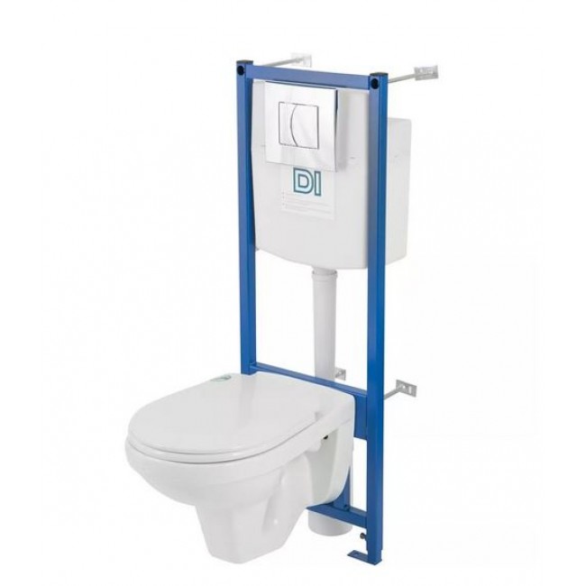 Инсталляция + унитаз Рио микролифт, инстал. DI с белой панелью,антивсплеск 2 кнопки Rosa