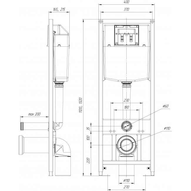 | Расстояние между креплениями к инсталляции, мм | 180 |