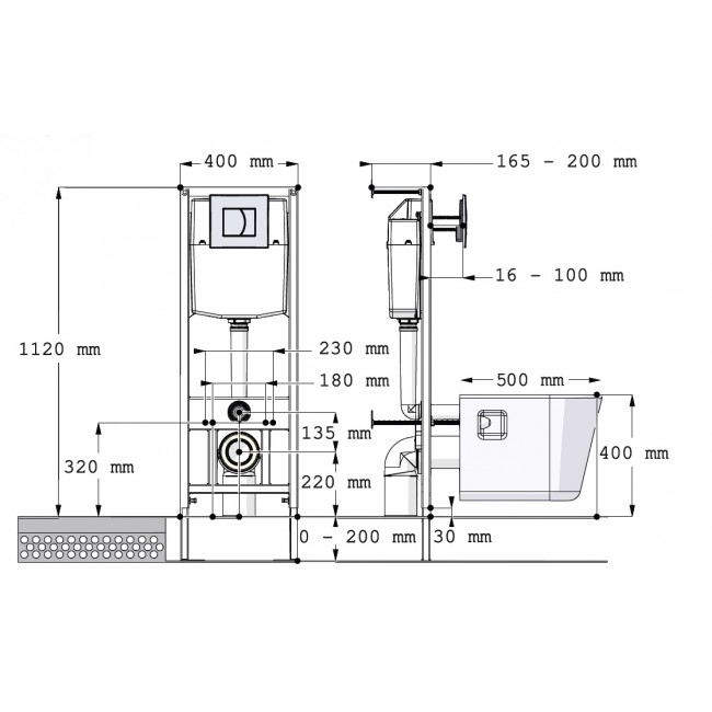 | Дапазон глубины ревизионного короба кнопки (панели смыва), мм | 16 - 100 |