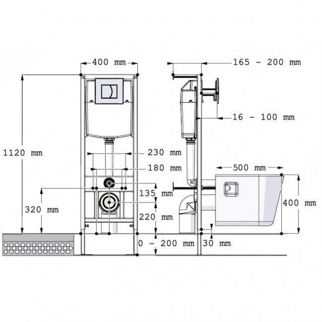 | Расстояние между креплениями к инсталляции, мм | 180 |