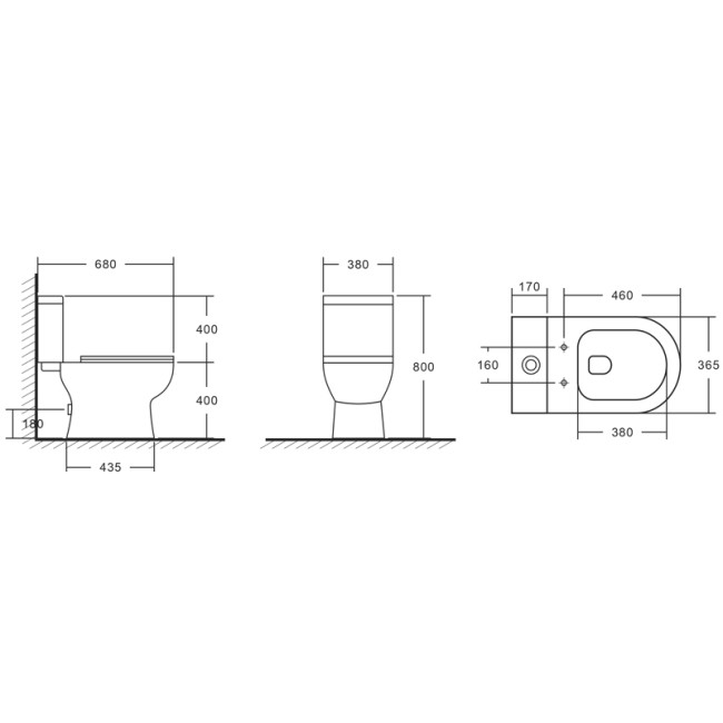 | Межосевое расстояние отверстий крепления бачка, мм | 170 |