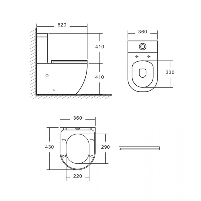 Унитаз-компакт A2809, безободковый, сиденье тонкое ДП, крепления Eva Gold