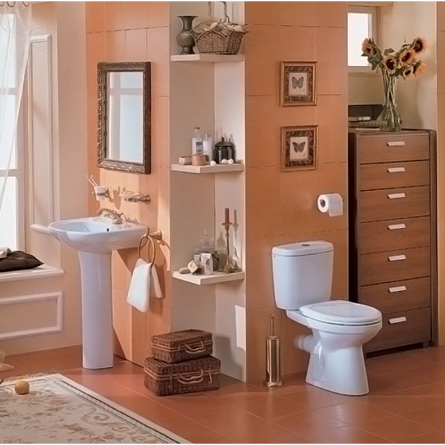Выполнен из санитарного фаянса и покрыт водонепроницаемой глазурью. Имеет овальную форму, бачок и чаша соединяются с помощью металлического крепления