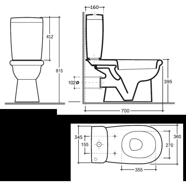 | Межосевое расстояние отверстий крепления бачка, мм | 155 |