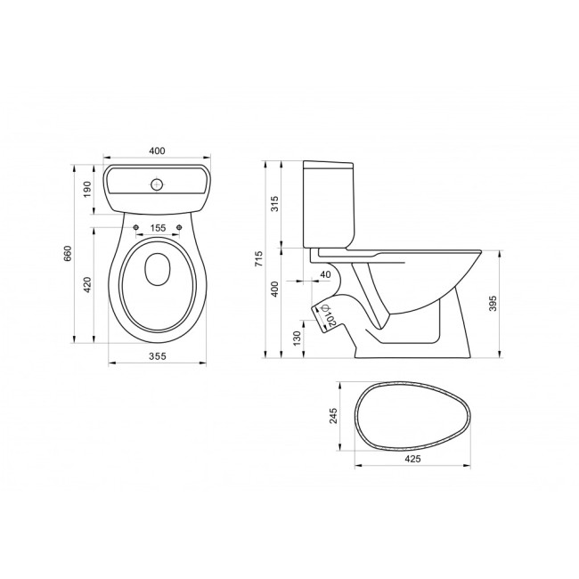 | Межосевое расстояние отверстий крепления бачка, мм | 155 |