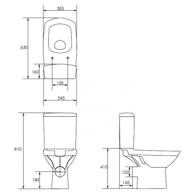 | Межосевое расстояние отверстий крепления бачка, мм | 155 |