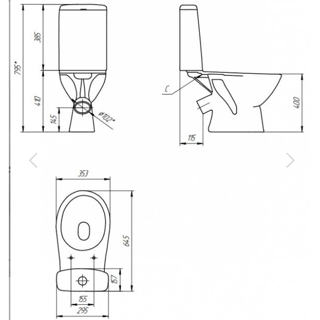 | Межосевое расстояние отверстий крепления бачка, мм | 155 |