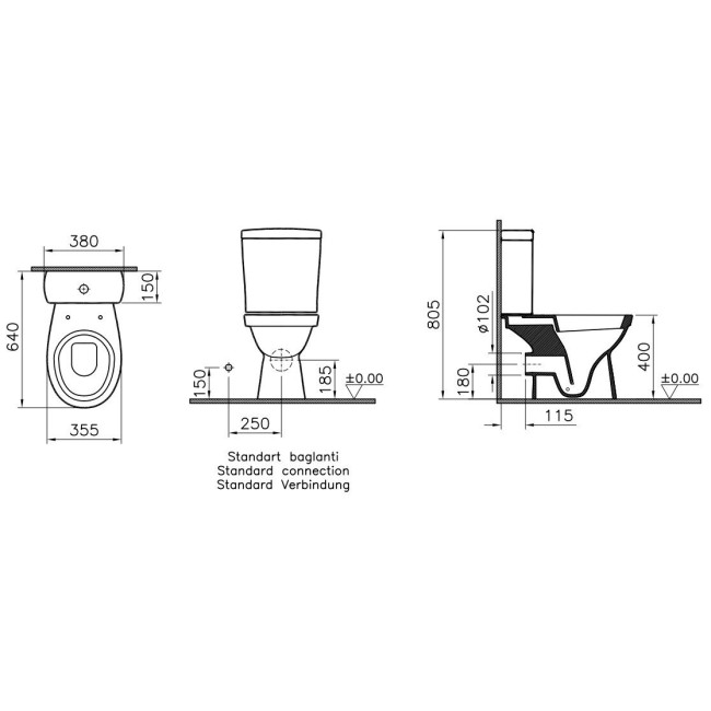 Унитаз произведен из фарфора. Параметры: ширина 380 мм, высота 810 мм. Унитаз имеет закругленную форму. Тип смыва в этом изделии каскадный. Направление выпуска горизонтальное, в стену, и оно должно соответствовать системе водоотведения в доме. Сочетание характеристик порадует поклонников классических моделей. Произведено изделие в Турции.