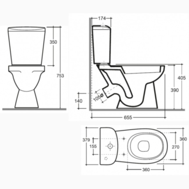 | Комплектация | Унитаз; Бачок; Арматура; Сиденье; Монтажный комплект. |