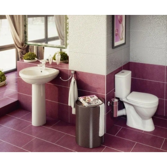 Унитаз-компакт с функцией антивсплеск, препятствующий разбрызгиванию, отличается привлекательным классическим дизайном, который позволит ему вписаться в любой интерьер. Санитарная керамика может быть исполнена в изысканном зеленом, синем, коричневом и черном декоре. Также выпускаются изделия в декоративном исполнении - кракелюр.